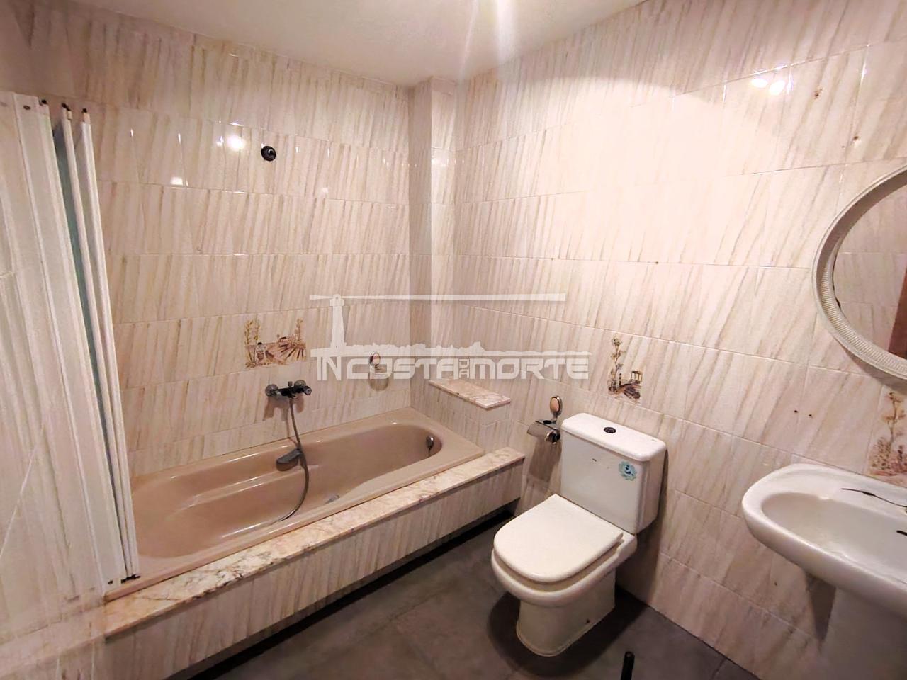 El piso se distribuye en 3 dormitorios (dos de ellos con armario empotrado), 2 baños completos, salón-comedor con acceso directo a la terraza cubierta, cocina independiente totalmente amueblada también con salida a la terraza, y un hall de entrada con pasillo de distribución que aporta amplitud y comodidad.